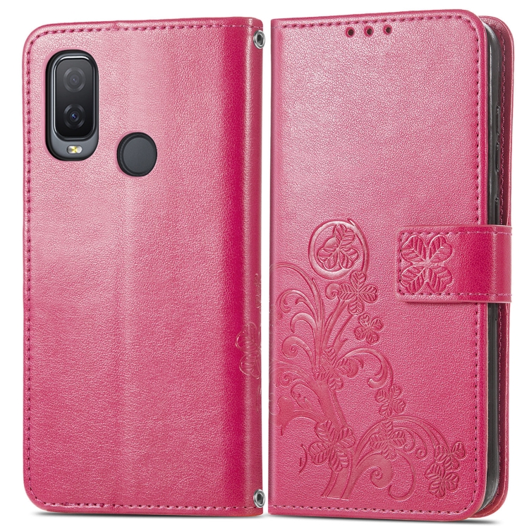 Funda de Cuero para Alcatel 1L 2021 con Cierre de Cuatro Hojas, Hebilla, Ranura para Tarjeta y Soporte (Magenta)
