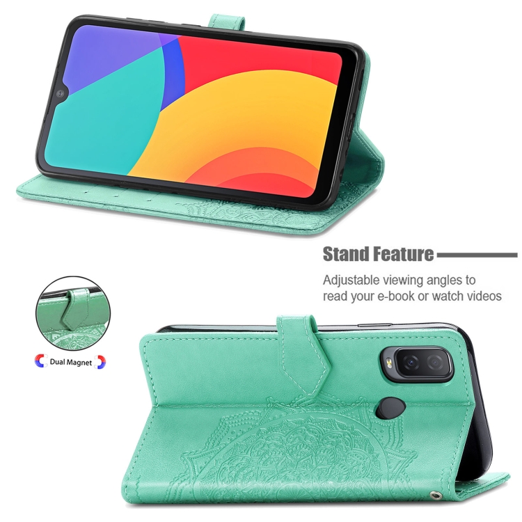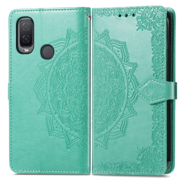 Funda Flip Horizontal Alcatel 1L 2021 Mandala Flower con Soporte, Billetera, 3 Tarjetas y Cordón (Verde)