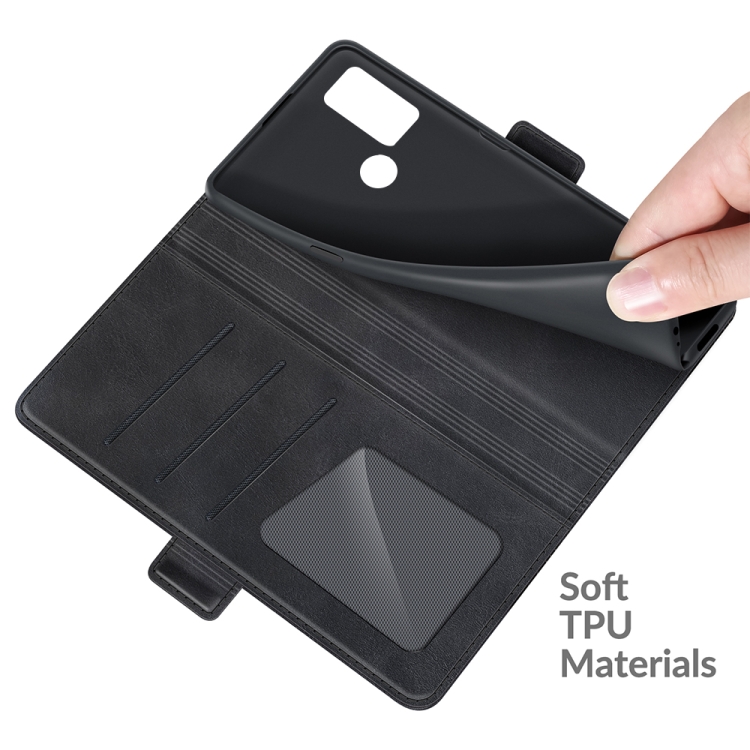 Funda Cuero Alcatel 1S 2021 3L 2021 Hebilla Magnética Doble Lado Soporte Ranuras (Negro)