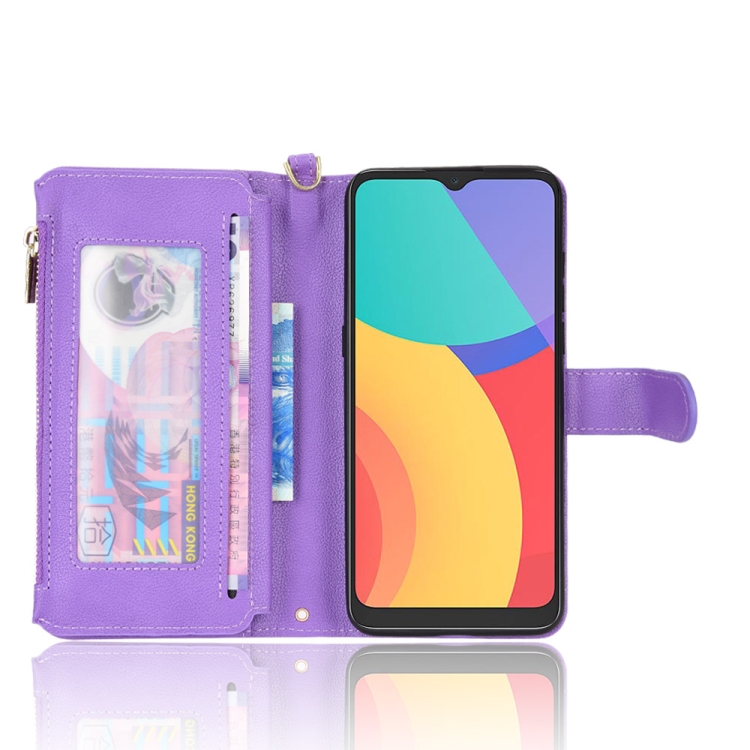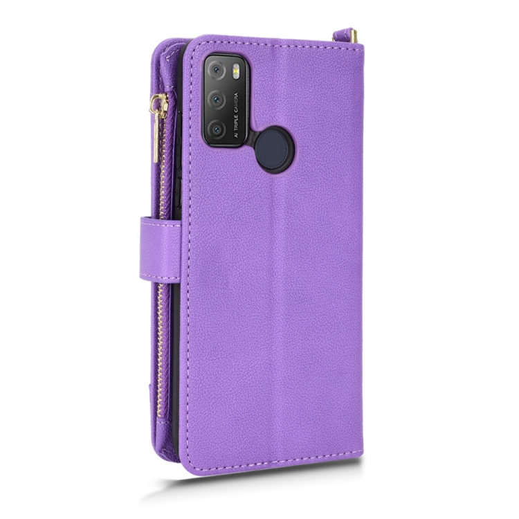 Funda de Cuero con Cremallera para Alcatel 1S 2021 y 3L 2021 (Púrpura)