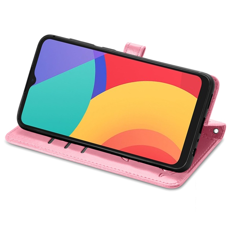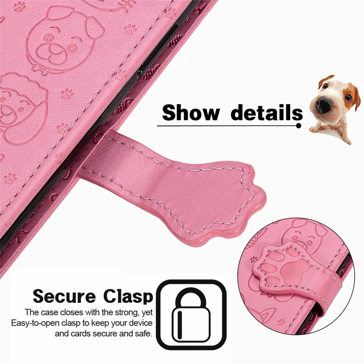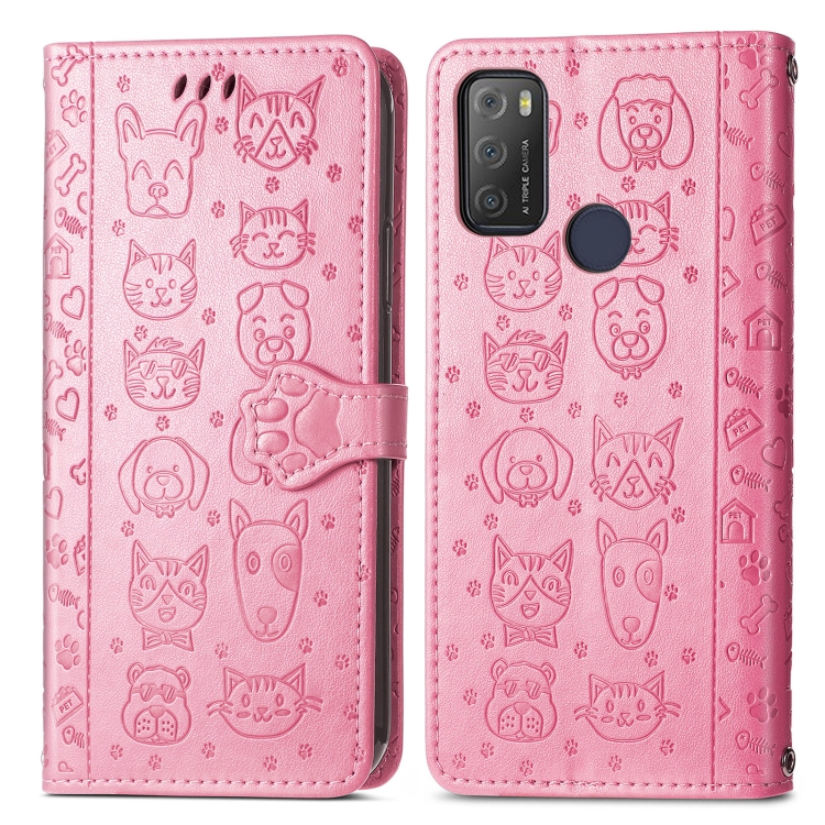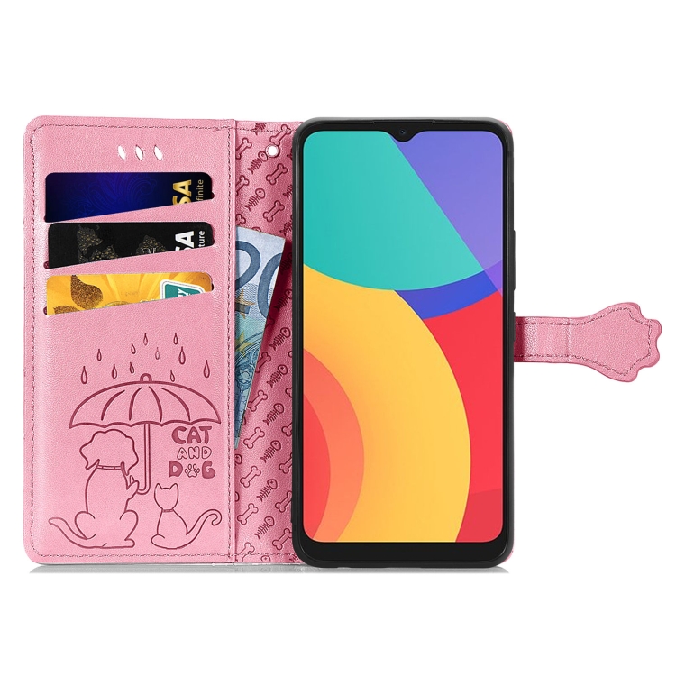 Funda Cuero Horizontal Alcatel 1S 2021 con Patrón Gato y Perro, Wallet, Lanyard (Rosa)