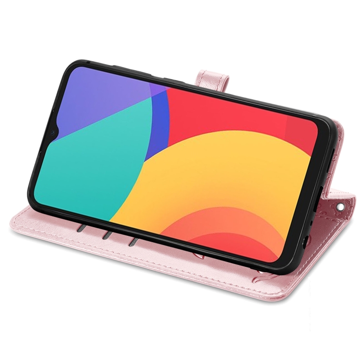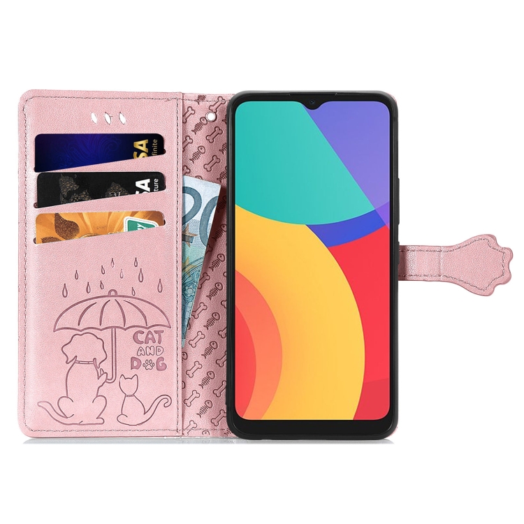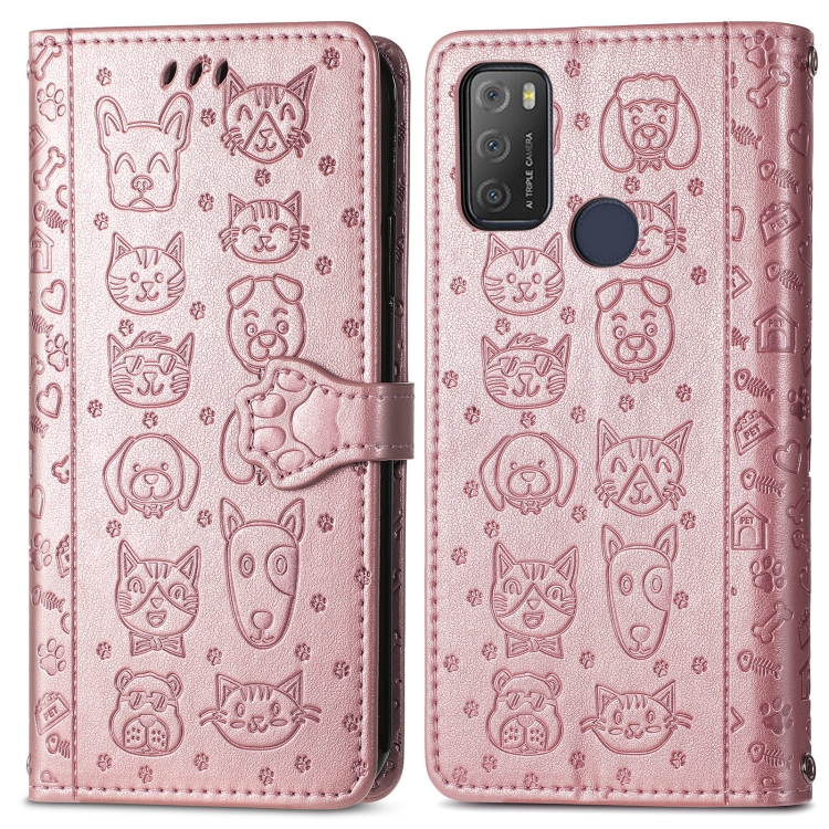 Funda Horizontal Flip Alcatel 1S 2021 Cuero Estampado Gato y Perros con Soporte y Billetera (Oro Rosa)