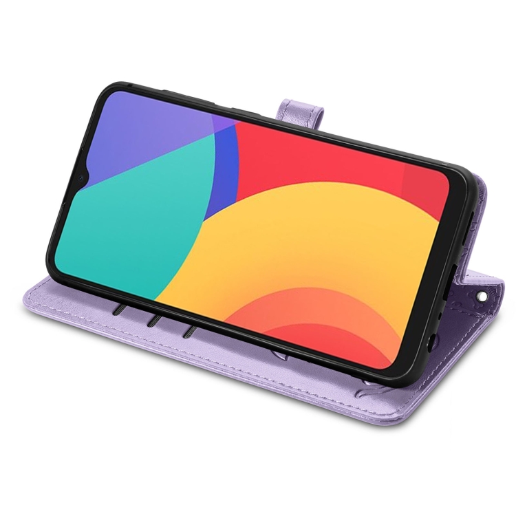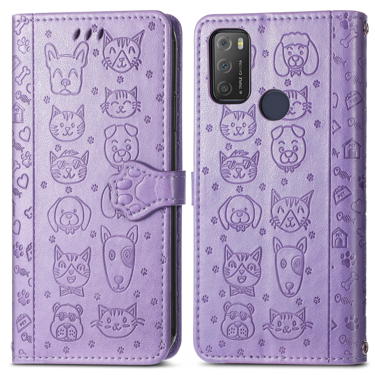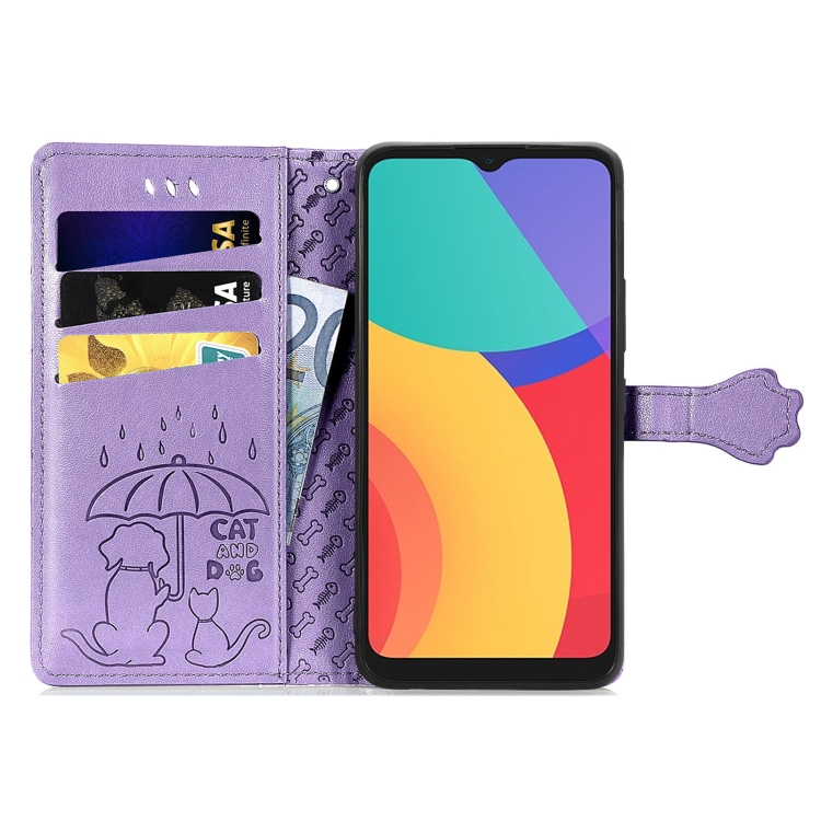 Funda Flip Cuero Alcatel 1S 2021 con Soporte, Billetera y Cordón (Púrpura)