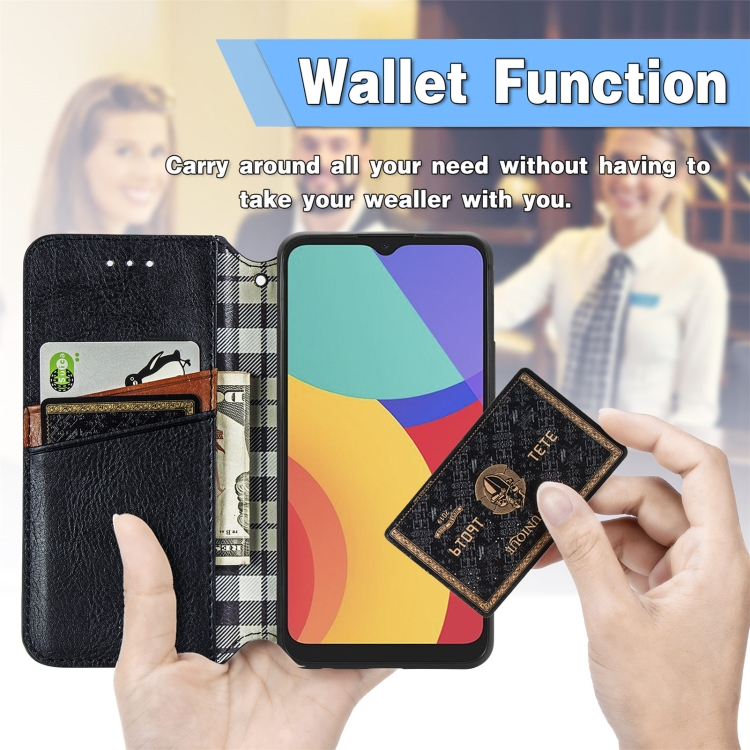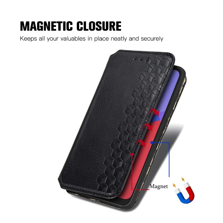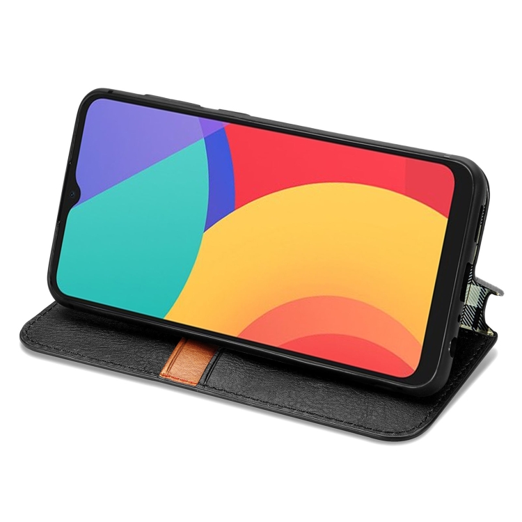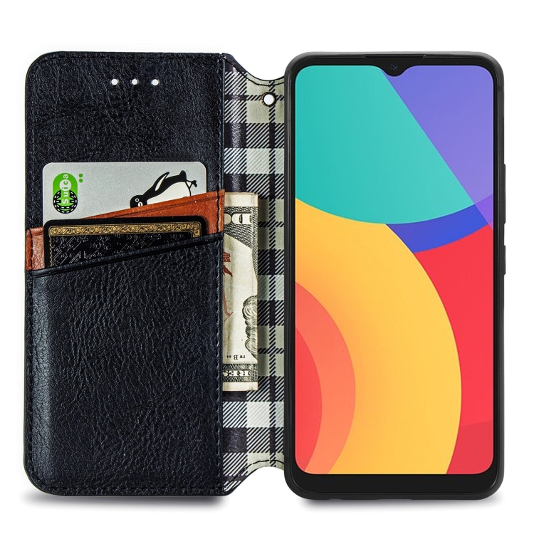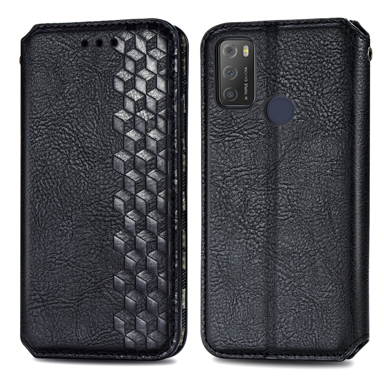 Funda Flip Alcatel 1S 2021 Rejilla Cúbica Presión Horizontal PU Soporte Ranuras Tarjetas Billetera (Negro)