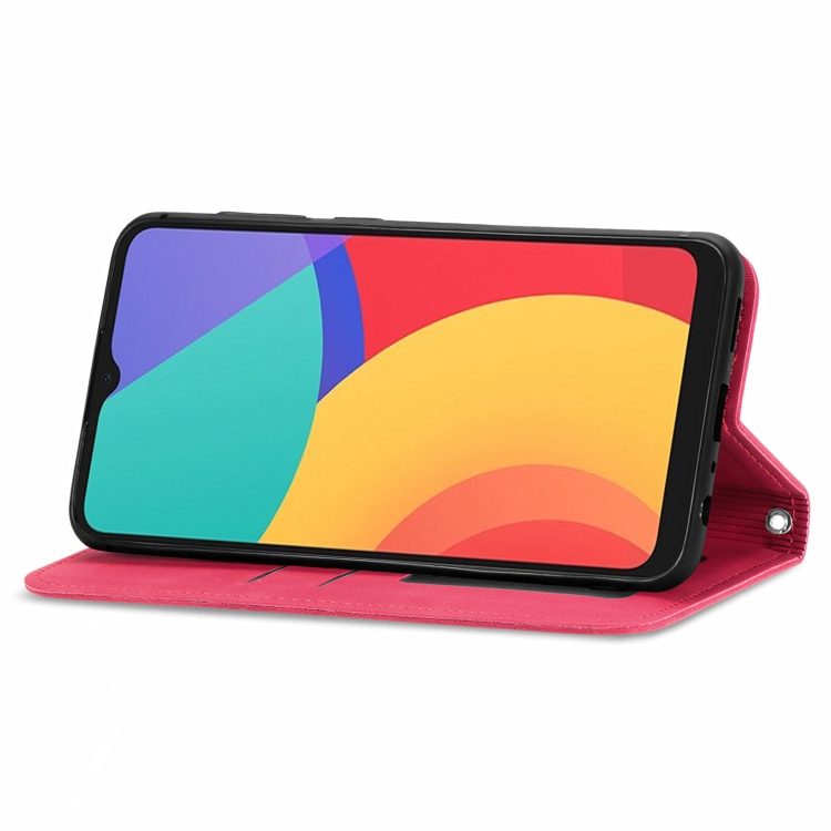 Funda Retro Piel Magnética Horizontal para Alcatel 1S 2021 con Soporte, Ranuras y Marco de Fotos (Rojo)