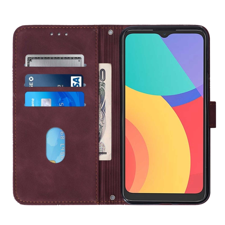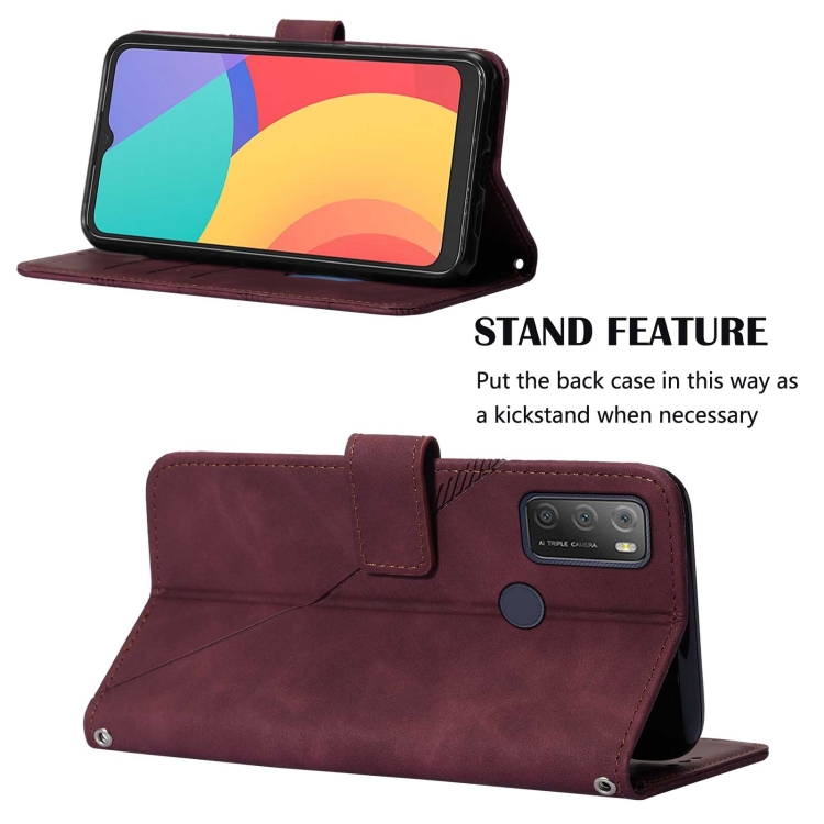 Funda Crossbody 3D de Cuero con Goma para Alcatel 1S / 3L (2021) (Rojo del Vino)