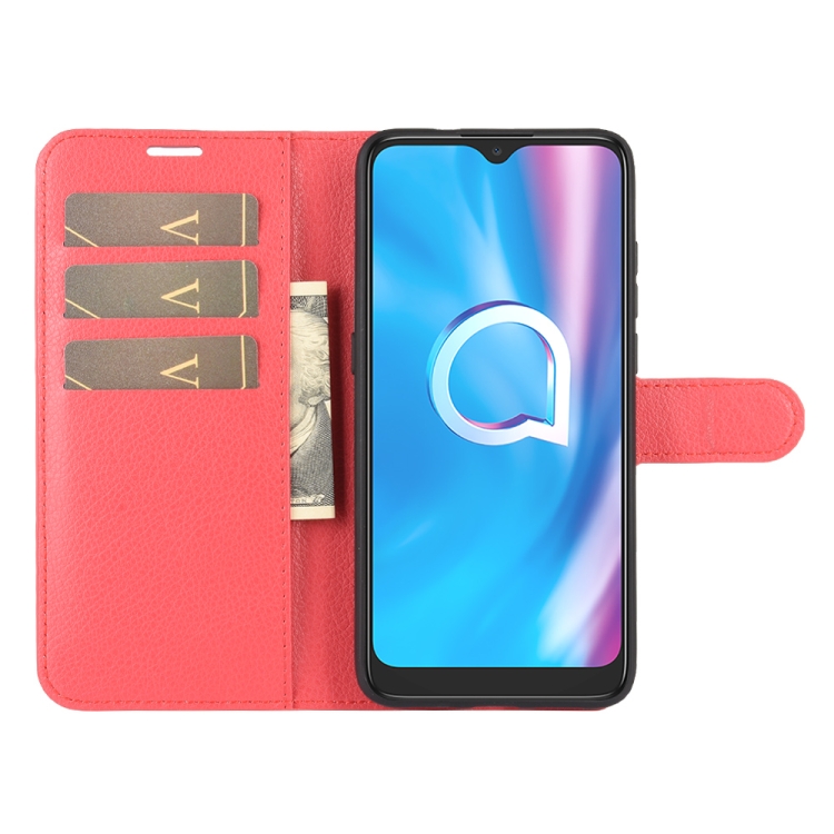 Funda Protectora Alcatel 1Se 2020 con Tapa Horizontal, Soporte, Ranuras para Tarjetas y Billetera (Rojo)