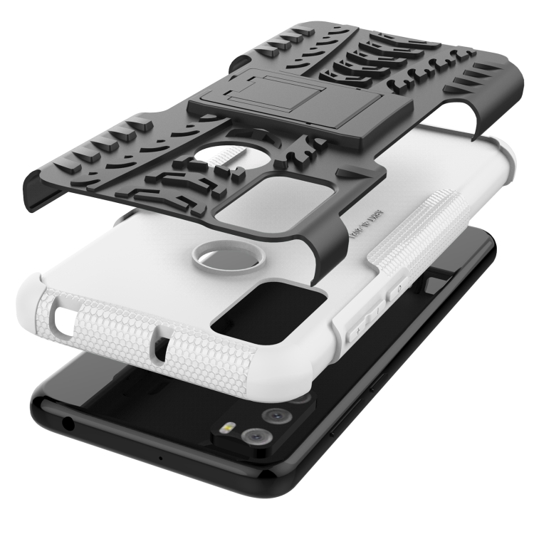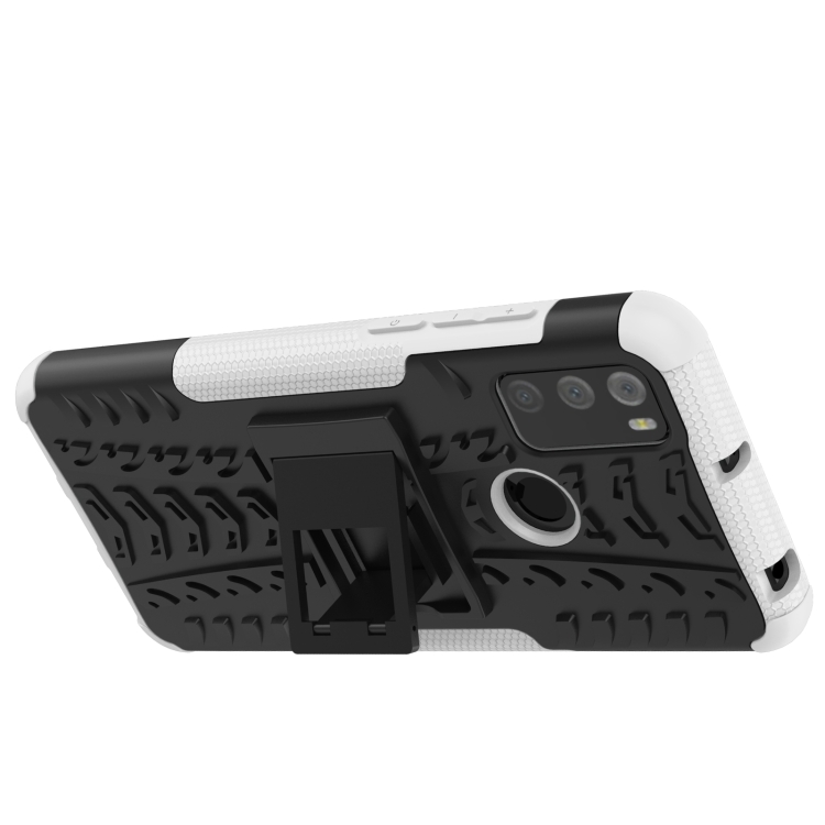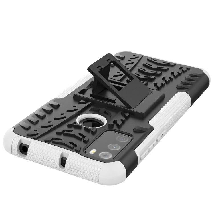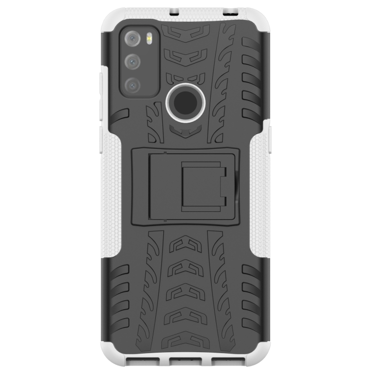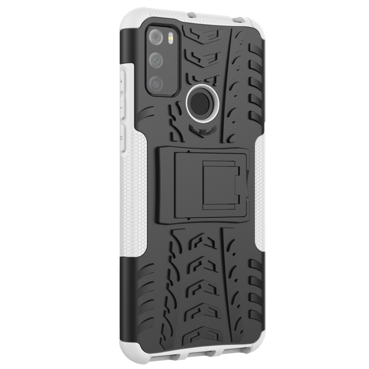 Funda Protectora TPU + PC con Soporte para Alcatel 3L (2021) Textura de Neumáticos (Blanco)