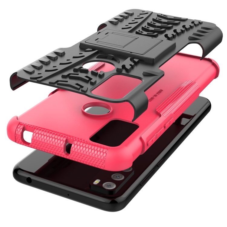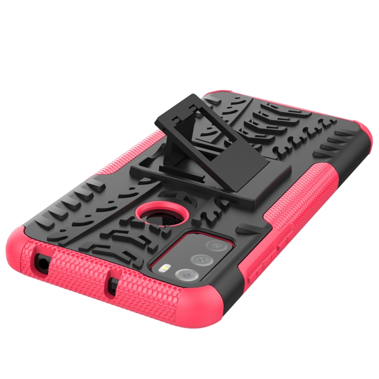 Funda Protectora Tpu + Pc con Soporte para Alcatel 3L (2021) Textura de Neumáticos (Rosa)