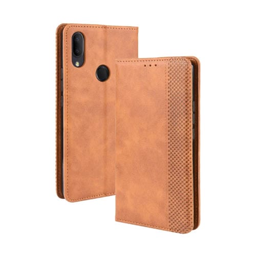 Funda de Cuero para Alcatel 3V (2019) Hebilla Magnética Tapa Horizontal Soporte (Marrón)