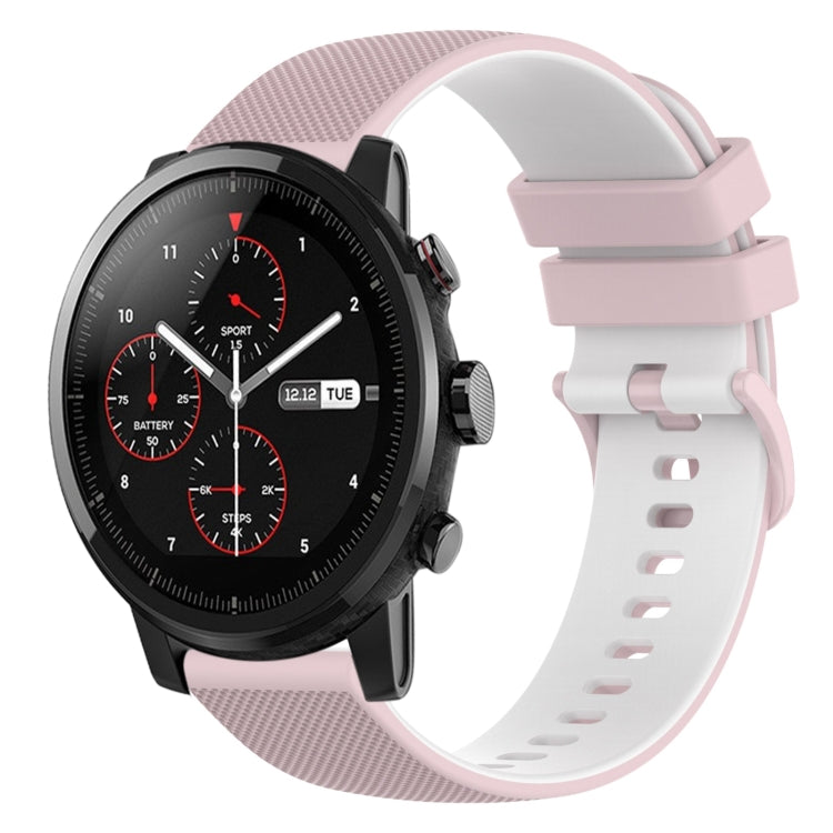 Correa de Reloj Amazfit 2 Stratos 22mm Silicona Dos Colores a Cuadros (Rosa + Blanco)