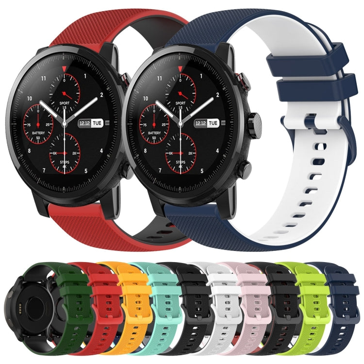 Correa de Reloj para Amazfit 2 Stratos 22mm Silicona Dos Colores a Cuadros (Verde Lima + Negro)