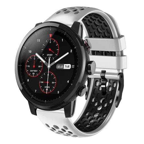 Correa de Reloj para Amazfit 2 Stratos 22mm Silicona Transpirable Dos Colores (Blanco + Negro)