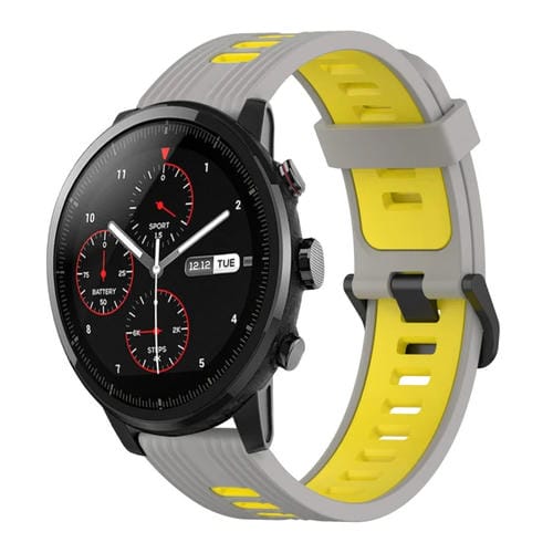 Correa de Reloj Amazfit 2 Stratos 22mm Silicona Dos Colores (Gris + Amarillo)