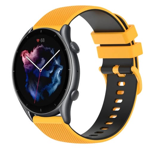 Correa de Reloj para Amazfit 3 22mm Silicona Dos Colores a Cuadros (Amarillo + Negro)