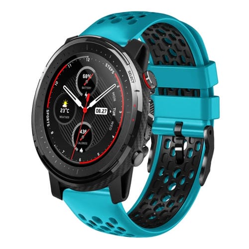 Correa de Reloj para Amazfit 3 22mm Silicona Transpirable Dos Colores (Azul Cielo + Negro)