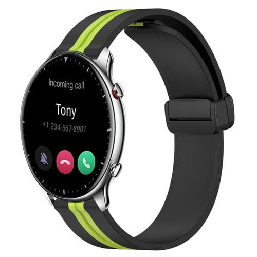 Correa de Reloj Amazfit GTR 2 22mm Silicona con Cierre Magnético Plegable (Negro + Verde Lima)