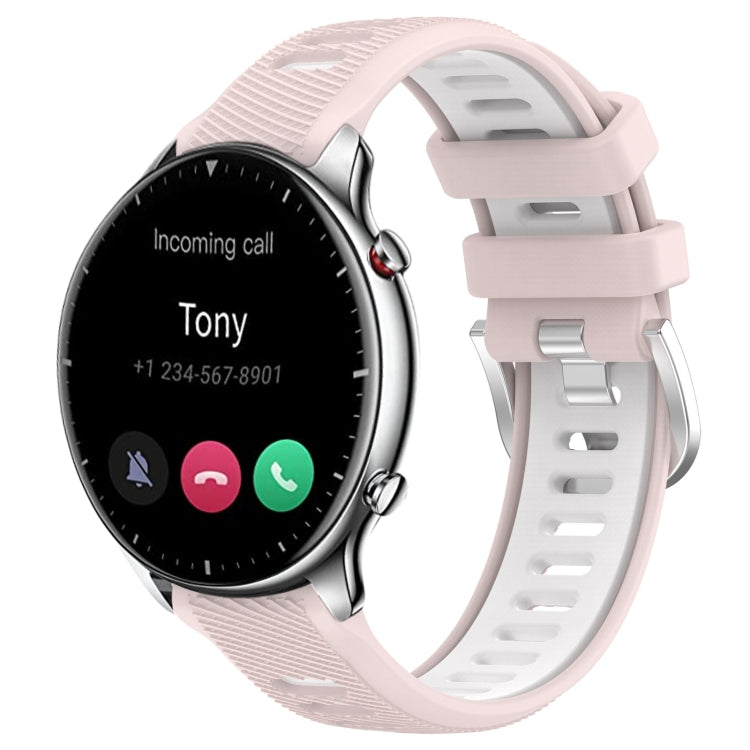 Correa de Reloj Amazfit GTR 2 22mm Silicona Textura Cruzada con Hebilla Acero (Rosa + Blanco)