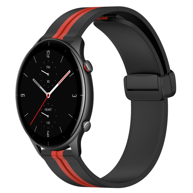 Correa de Reloj Amazfit GTR 2E 22mm Silicona Cierre Magnético Plegable (Negro + Rojo)