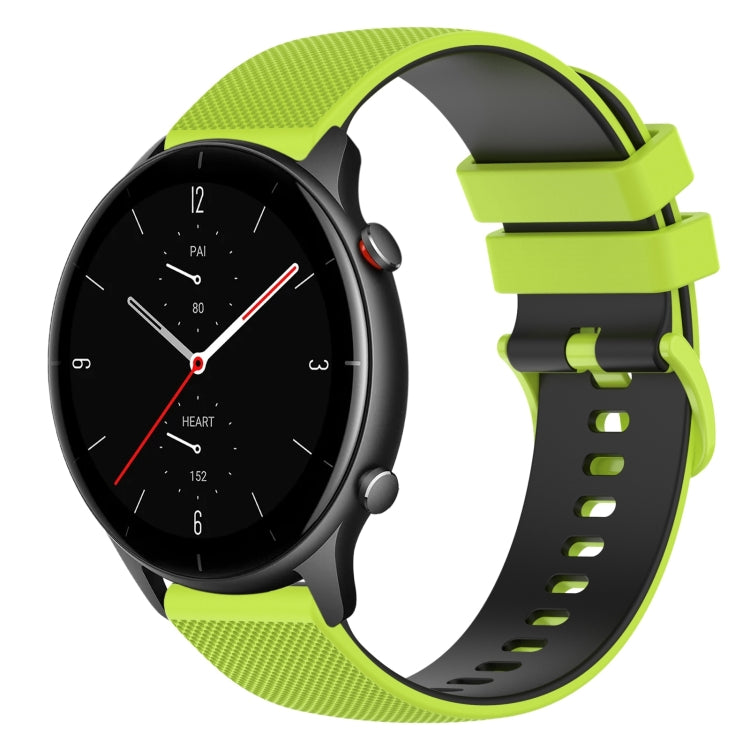 Correa de Reloj para Amazfit GTR 2E 22mm Silicona Dos Colores a Cuadros (Verde Lima + Negro)