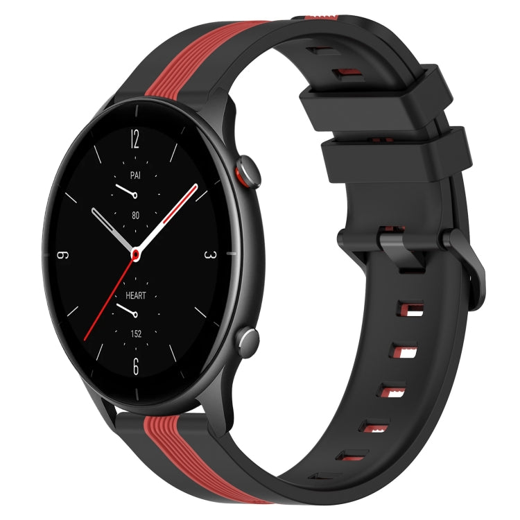 Correa de Silicona para Amazfit GTR 2E 22mm Dos Colores Vertical (Negro + Rojo)