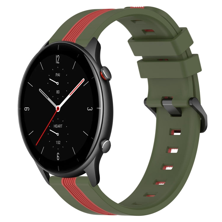 Correa de Reloj silicona para Amazfit GTR 2E 22mm dos colores vertical (Verde Militar + Rojo)