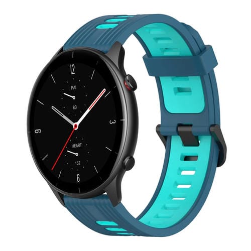 Correa de Silicona para Amazfit GTR 2E 22mm con Patrón Vertical y Dos Colores (Azul + Pato de Agua)