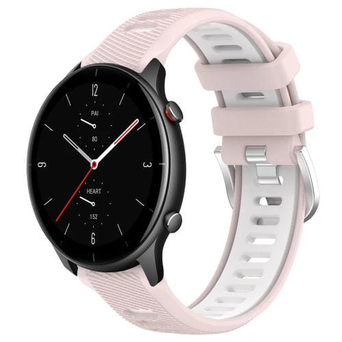 Correa para Amazfit GTR 2E 22mm silicona textura cruzada con hebilla acero (Rosa + Blanco)
