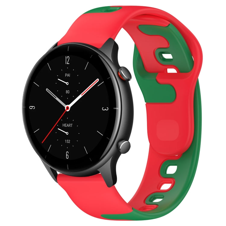 Correa de Silicona para Amazfit GTR 2E 22mm Doble Color (Rojo + Verde)