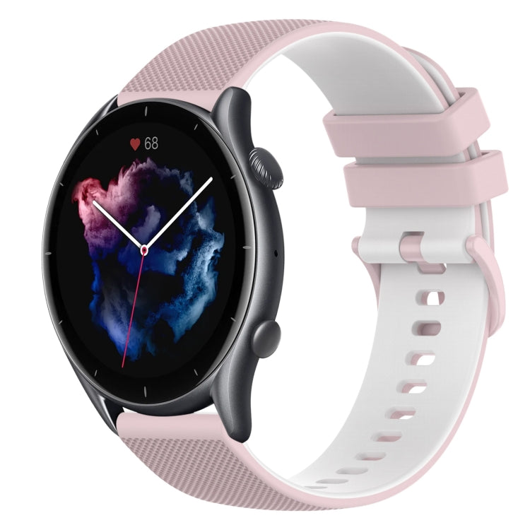 Correa de Reloj para Amazfit GTR 3 22mm Silicona Dos Colores a Cuadros (Rosa + Blanco)