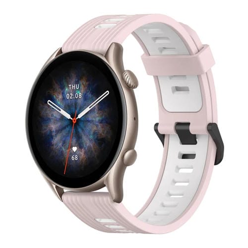 Correa de silicona para Amazfit GTR 3 Pro 22mm patrón vertical dos colores (Rosa + Blanco)
