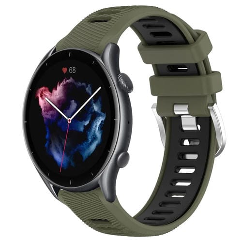 Correa de Reloj Amazfit GTR 3 Pro 22mm silicona textura cruzada con hebilla acero (Verde Militar + Negro)