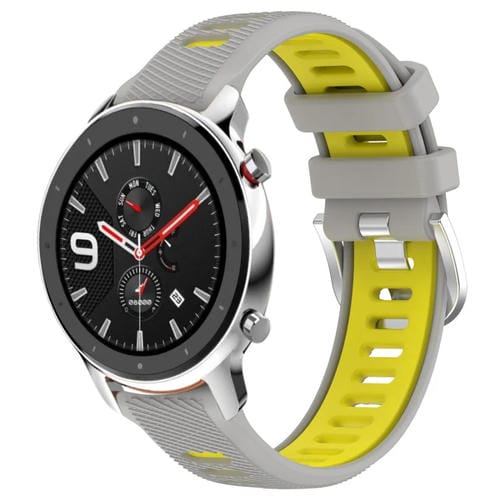 Correa de Reloj Amazfit GTR 4 Pro 22mm silicona textura cruzada con hebilla acero (Gris + Amarillo)