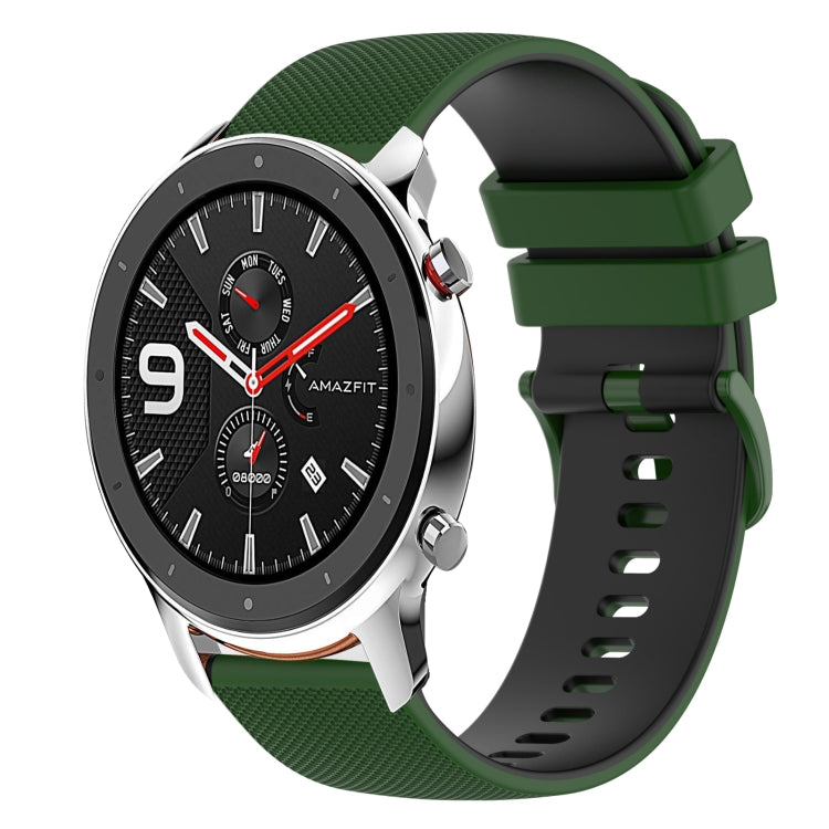 Correa de Reloj para Amazfit GTR 42mm 20mm Silicona Dos Colores a Cuadros (Amy Green + Black)