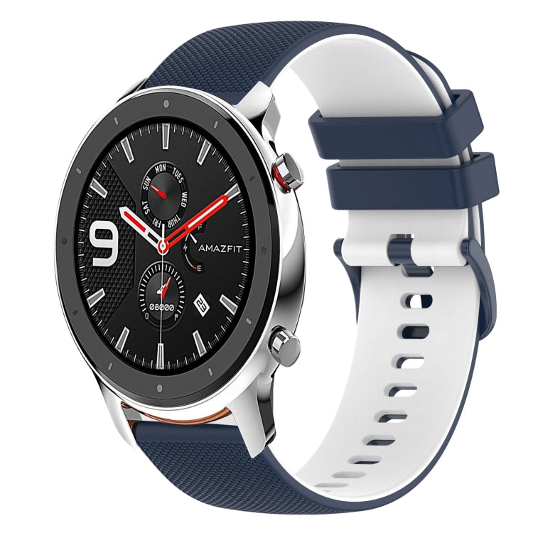 Correa de Reloj silicona para Amazfit GTR 42mm 20mm dos colores a cuadros (Azul Oscuro + Blanco)