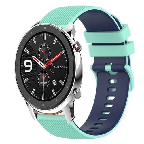 Correa de Silicona para Amazfit GTR 42mm 20mm Dos Colores a Cuadros (Verde Azulado + Azul)