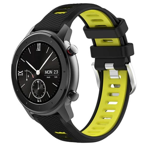 Correa de Reloj para Amazfit GTR 42mm 22mm Textura Cruzada de Silicona con Hebilla de Acero (Negro + Verde Lima)