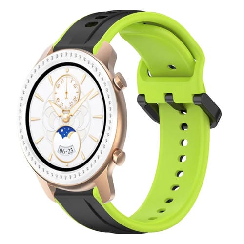 Correa de Reloj Amazfit GTR 42mm 20mm silicona dos colores con bucle convexo (Negro + Lima)