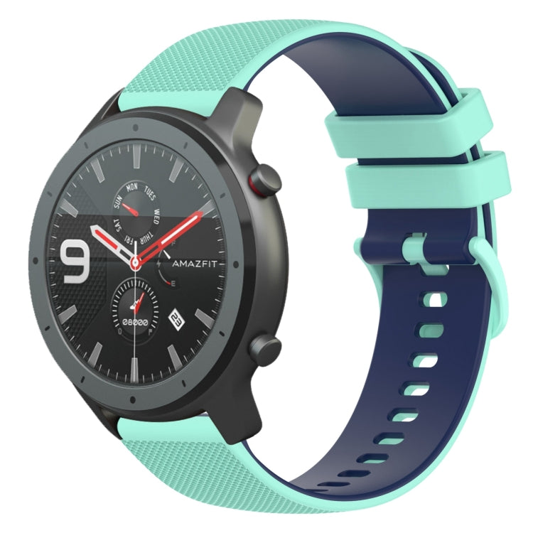 Correa de Reloj silicona Amazfit GTR 47mm 22mm dos colores a cuadros (Verde Azulado + Azul)