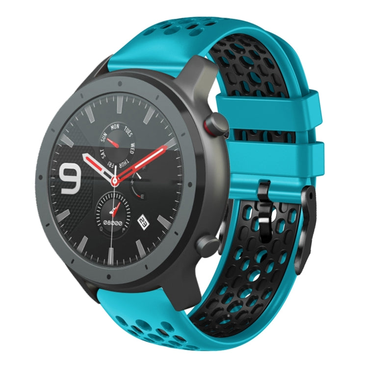 Correa de Reloj para Amazfit GTR 47mm 22mm Silicona Transpirable Dos Colores (Azul Cielo + Negro)