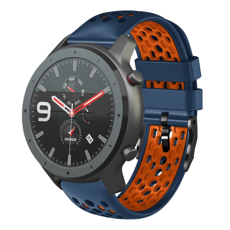 Correa de Reloj Silicona para Amazfit GTR 47mm 22mm Transpirable Dos Colores (Azul Medianoche + Naranja)