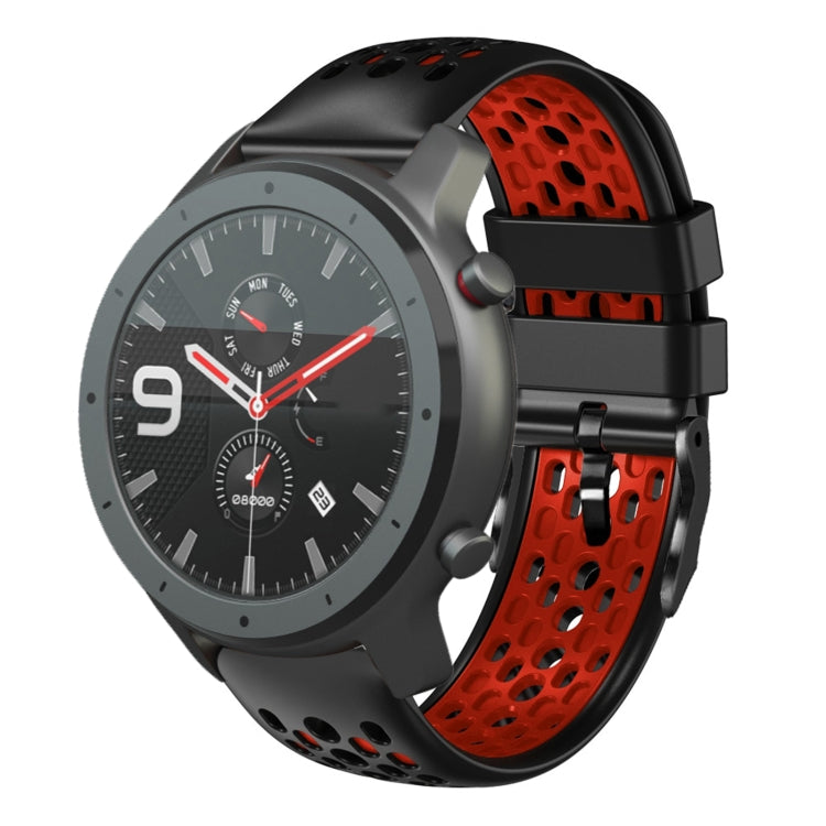 Correa de Reloj para Amazfit GTR 47mm 22mm silicona transpirable dos colores (Negro + Rojo)