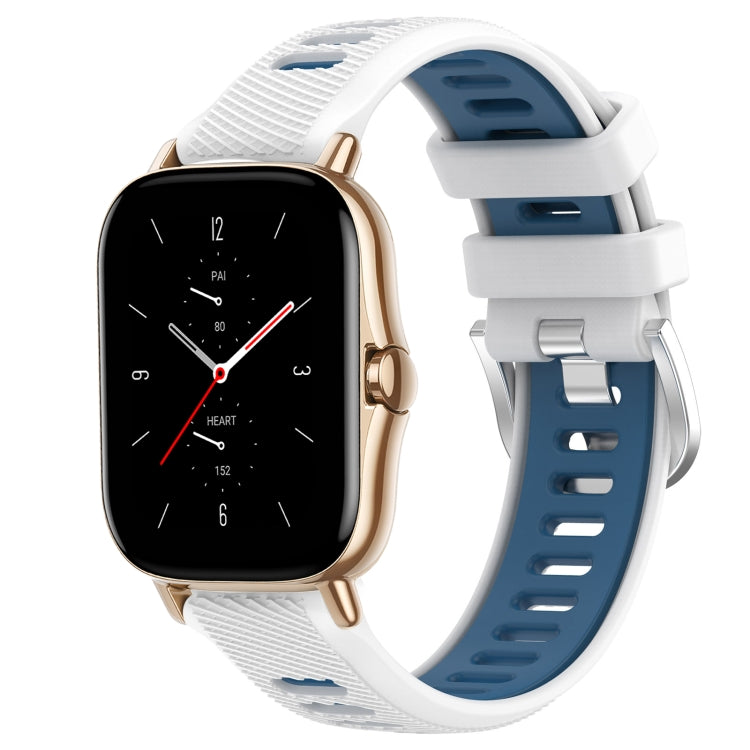 Correa de Reloj Amazfit GTS 2 Silicona Dos Colores con Hebilla de Acero 22mm (Blanco + Azul)