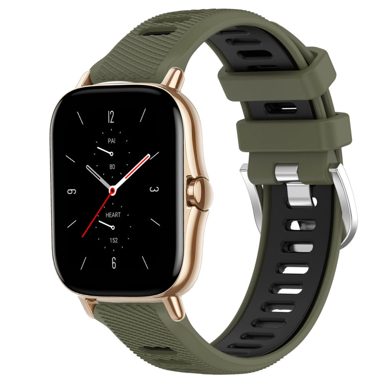 Correa de Reloj Amazfit GTS 2 22mm Silicona Dos Colores con Hebilla de Acero (Verde Militar + Negro)
