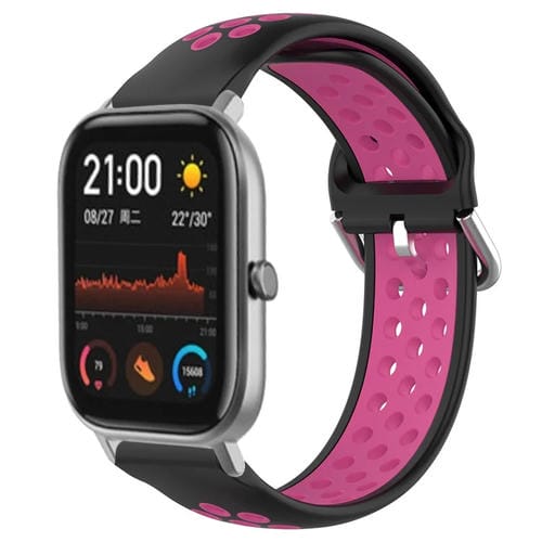 Correa de Reloj Silicona Deportiva para Amazfit GTS 20mm Transpirable Perforada (Negro + Rojo Rosa)