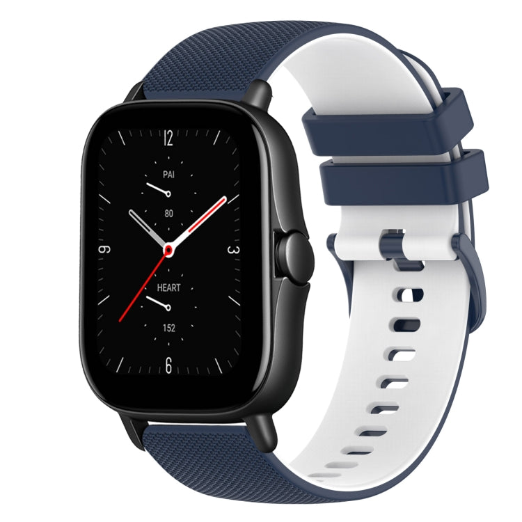 Correa de Silicona para Amazfit GTS 2E 20mm Dos Colores a Cuadros (Azul Oscuro + Blanco)