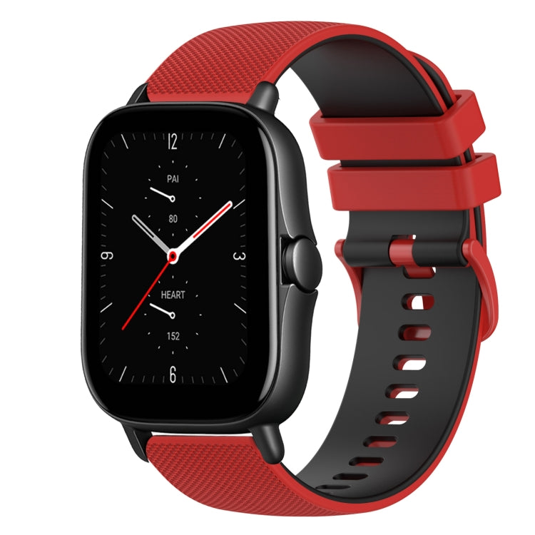 Correa de Reloj para Amazfit GTS 2E 20mm Silicona Dos Colores a Cuadros (Rojo + Negro)