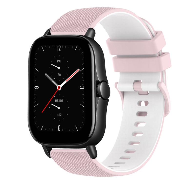 Correa de Reloj para Amazfit GTS 2E 20mm Silicona Dos Colores a Cuadros (Rosa + Blanco)