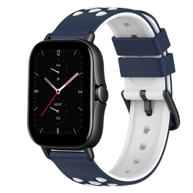 Correa de Reloj para Amazfit GTS 2E 20mm Silicona Dos Colores (Azul Medianoche + Blanco)