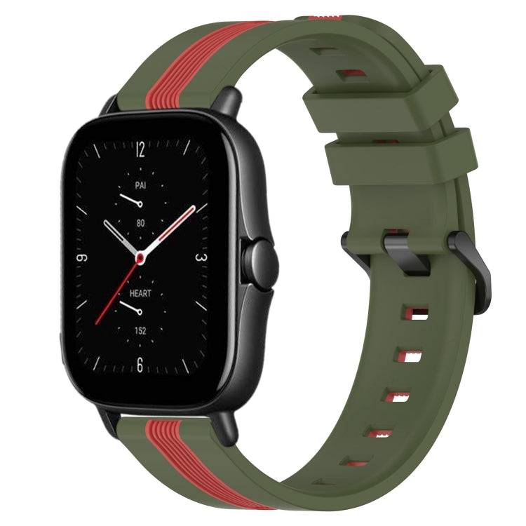 Correa de Reloj Amazfit GTS 2E 20mm silicona dos colores vertical (Verde Militar + Rojo)